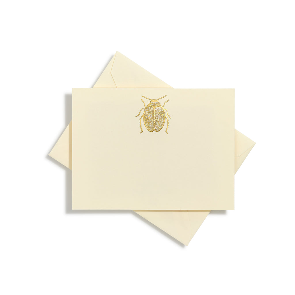 Each card is expertly engraved in luxurious gold with exquisite detail. Symbolic of eternity and rejuvenation, these scarab notecards will compliment your personal notes of lasting love and adoration.