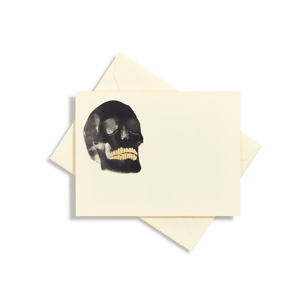 Embrace your inner macabre with this set of skull notecards. The use of gray and black tones contrasted with gold creates an incredible three-dimensional look. Exquisitely detailed and beautiful. Personally selected by Linda Fargo for Linda's at Bergdorf Goodman.