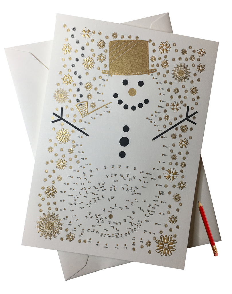 This is a really fun card! The recipient gets to use the enclosed pencil to do the connect the dots and reveal the hidden "Happy Holidays" message. Engraved in gold and black on white stock. Blank inside. Mini pencil included. A VERY SPECIAL KEEPSAKE CARD.
