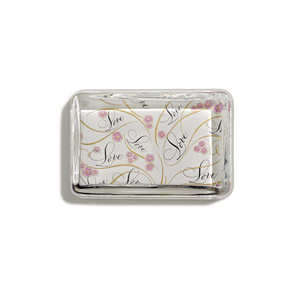Engraved in 3 colors, gold, brown and pink, this tree of life paperweight is the perfect way to commemorate your love. Because the glass of each paperweight is handmade, slight variations and champagne bubbles may appear as a natural result of the process.