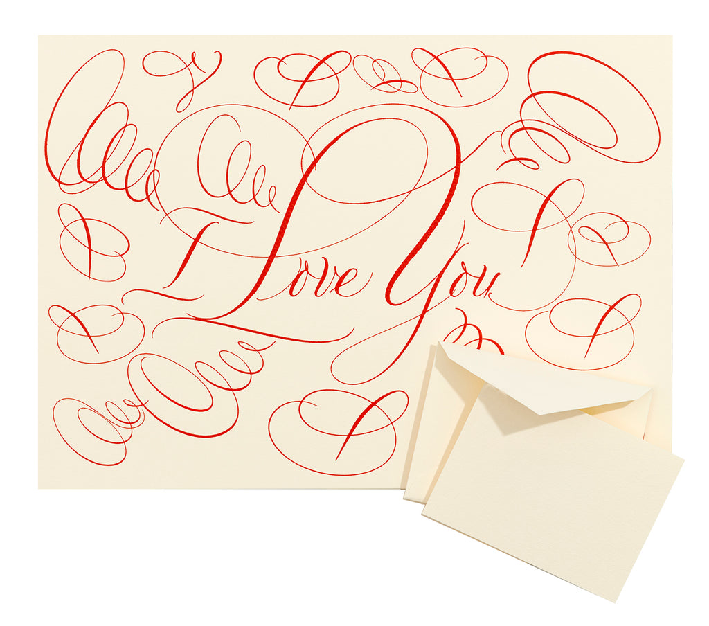 Show your love with this perfectly flourishing Grand Statement Card. Bernard Maisner's inimitable calligraphy is expertly engraved to add flair and beauty. The accompanying small sentiment card provides the perfect space for your thoughtful message. The Bernard Maisner Grand Statement cards are unique in the world of fine stationery requiring multiple press runs and heavy thickness stock. Perfect for the unique person in your life.