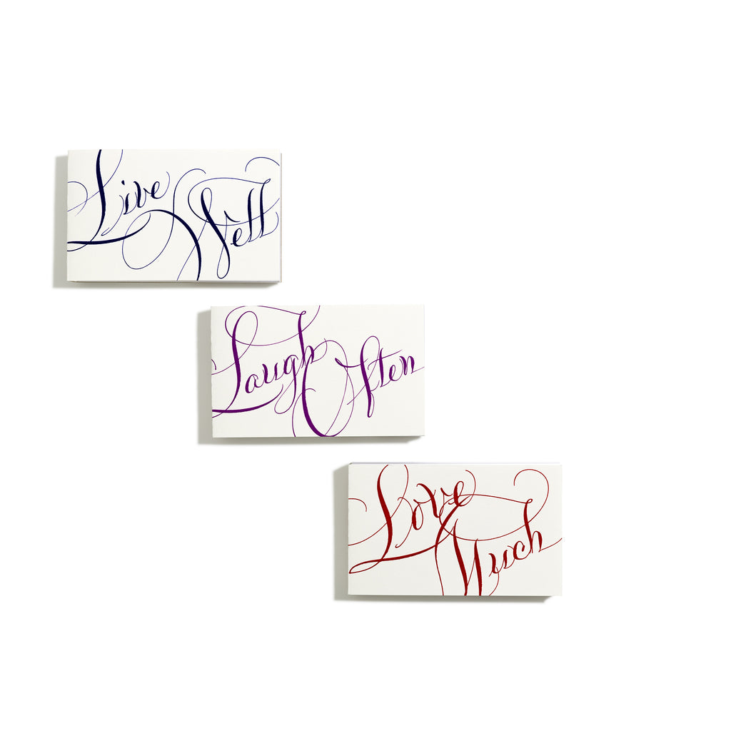 This trio reminds to take a step back and remember what makes a good life. Bernard Maisner's inimitable calligraphy is engraved onto the covers of this three pad set in blue, purple and red.