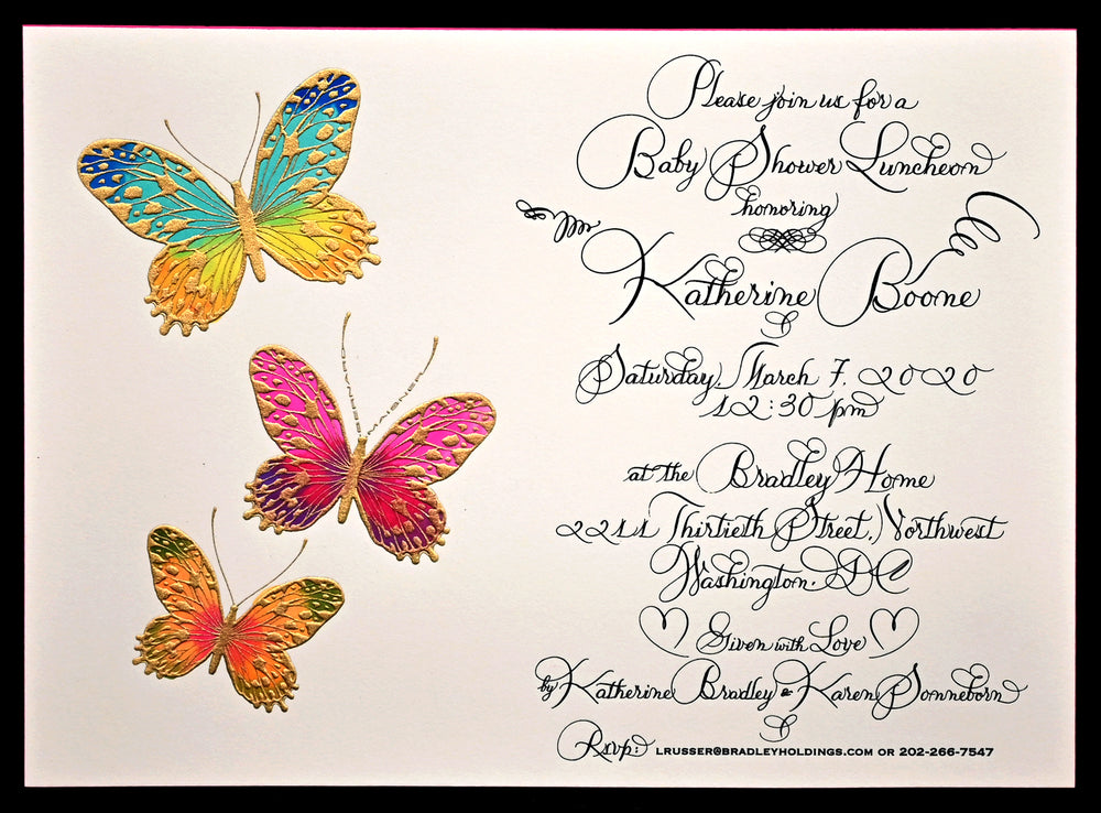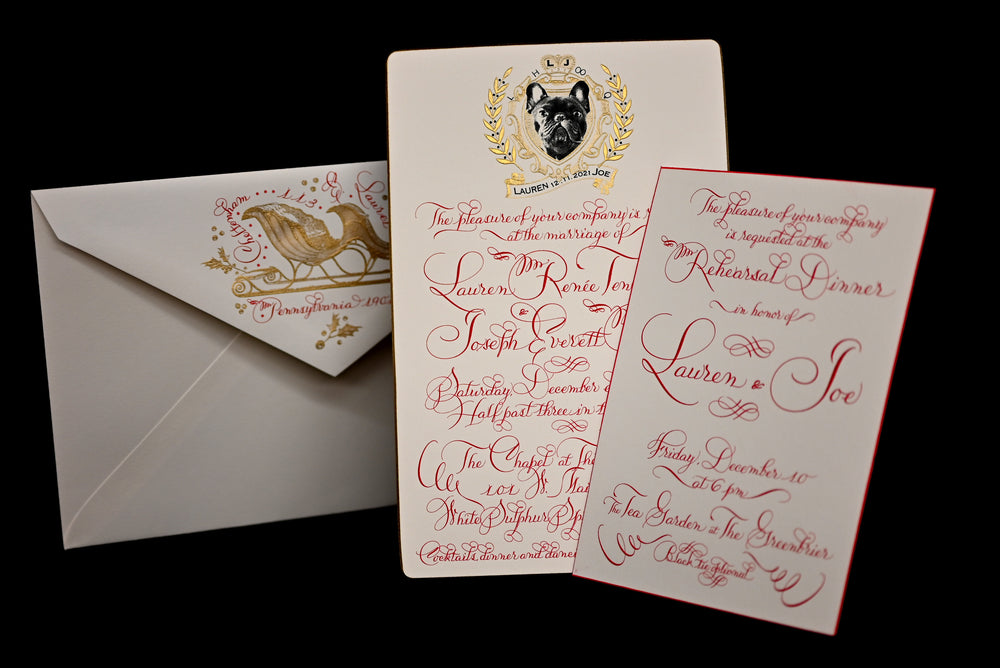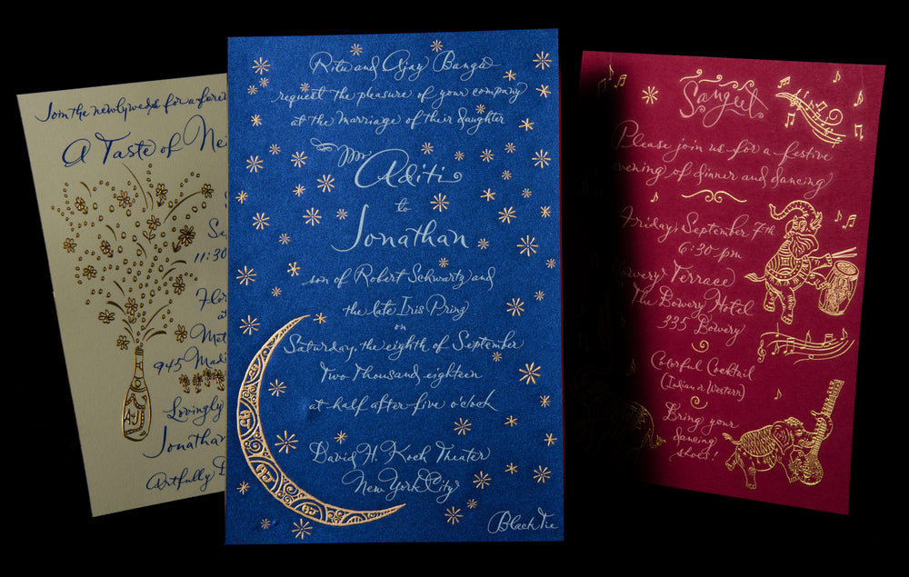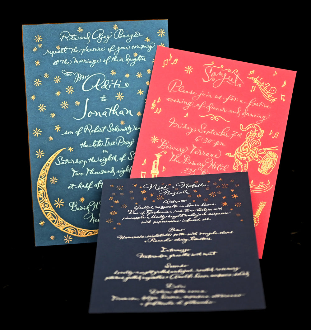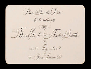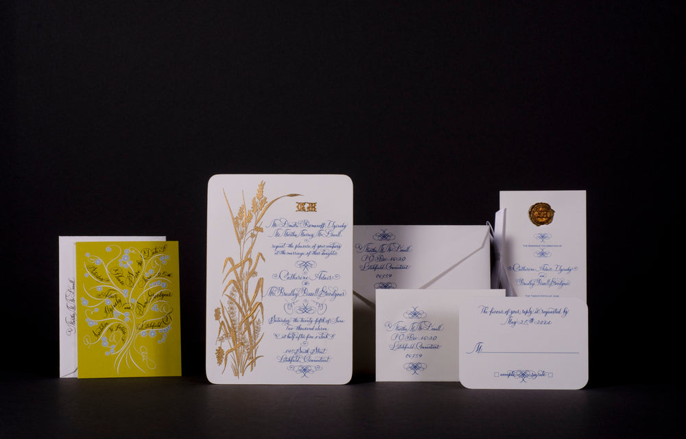 The hands-on bespoke stationery process begins with a consultation, then wends through creation and design, and concludes with printing. Mr. Maisner personally oversees each step with a discerning eye for detail and a personal passion to provide the best. He also offers the addressing of envelopes, lettering names on place cards, etc., in his elegant scripts.