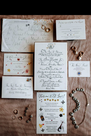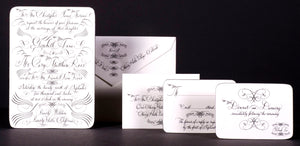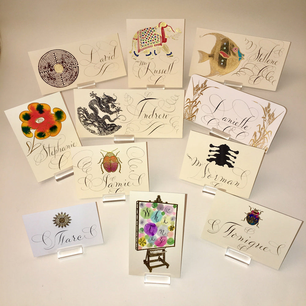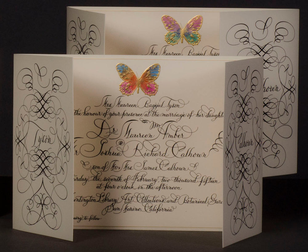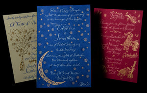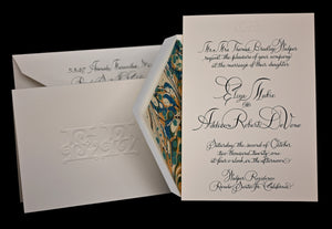 A blank canvas materializes into exquisite bespoke stationery, energized by meaningful artist-client collaboration and a dedicated commitment to the sublime. Mr. Maisner’s extensive experience as a painter, contemporary artist, and master calligrapher effects this transformation from concept to realization. And it finds form in made-to-order wedding stationery, party and event invitations, place cards, menu cards, personal stationery suites, and other one-of-a-kind artistic complements.