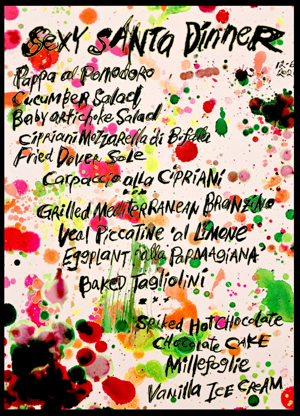 Bernard also enjoys creating splashy, colorful, and riotously splattered motifs in playful counterpoint to the more classical themes he offers.