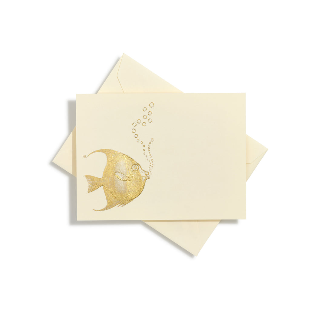 The highly detailed engraving creates rich depth and dimension in this playful fish with bubbles notecard. The perfect way to say thank you or simply send a hand-written note to say hello.